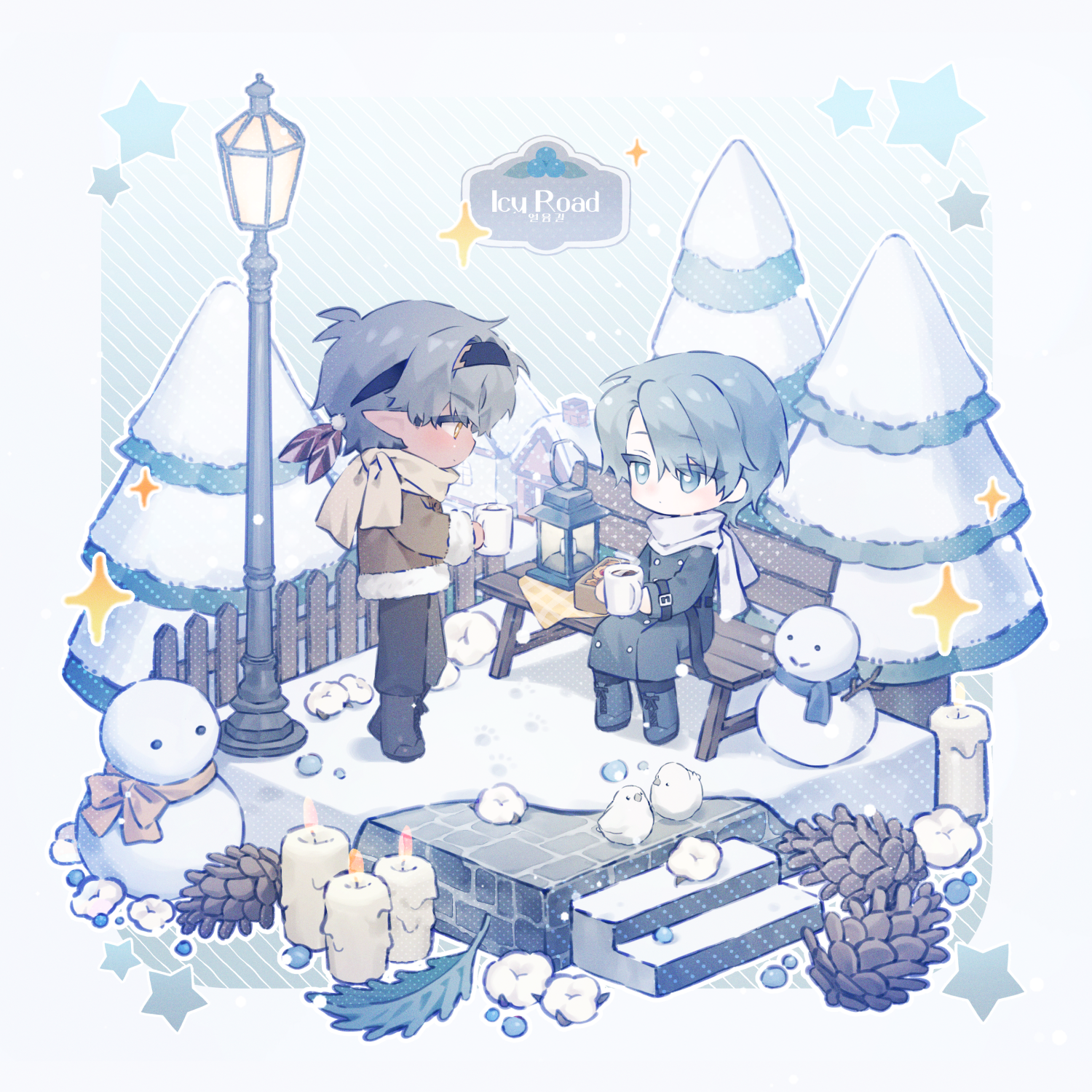 페어명, 나뭇잎 , 돌아가는 별 색 (2가지 가능), 눈사람 목도리,